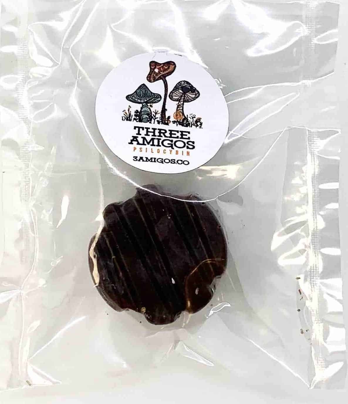 Three Amigo’s Psilocybin Mini Dark Chocolate Bite 0.8g of psilocybin is divine in more ways than one. We take pride in our ingredients and our small batch process. We use 60% dark Criollo cacao that is organic, fair-trade and sourced from lowland regions of Ecuador, which is blended with locally-grown Golden Teacher magic mushrooms. Criollo cacao provides a rich and satisfying taste without the bitterness that accompanies typical dark chocolate. Our chocolate is hand-crafted using low temperatures and slower processing to preserve the nutrients, micronutrients and antioxidants that naturally occur in chocolate.