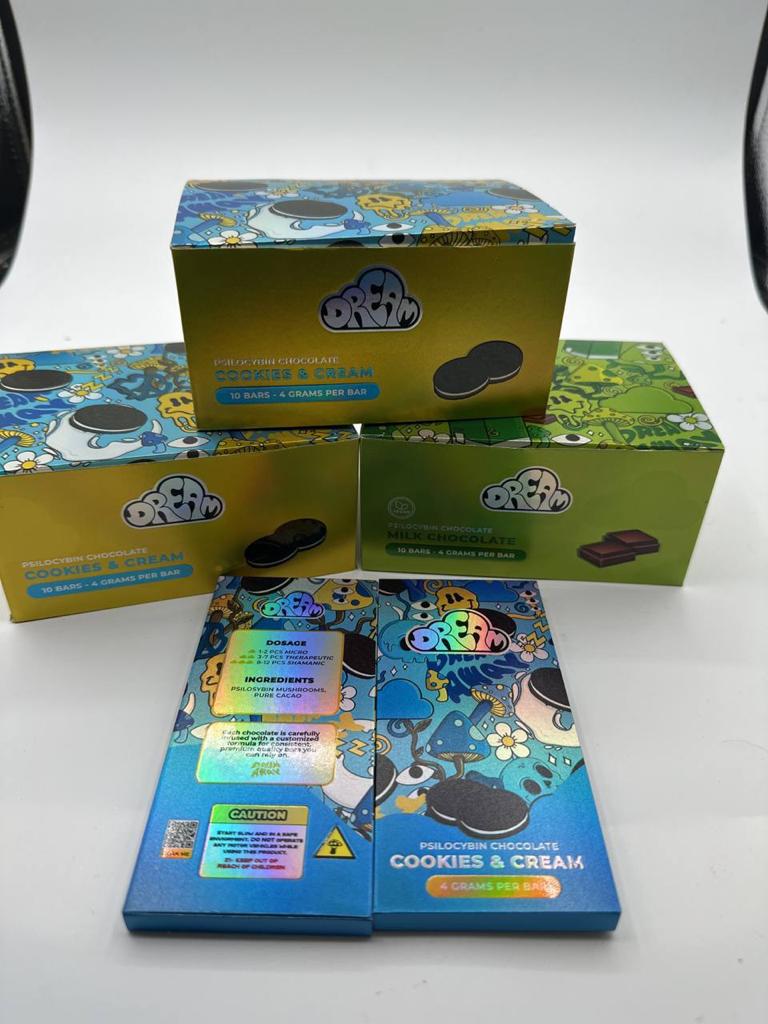 Cookies & Cream Dream Bars are typically packaged in airtight, child-resistant packaging, as required by most cannabis regulations. The packaging may be brightly colored or feature fun, whimsical designs to emphasize the sweet nature of the product. On the back, you’ll find detailed labeling with information about the ingredients, dosage, and recommended use.